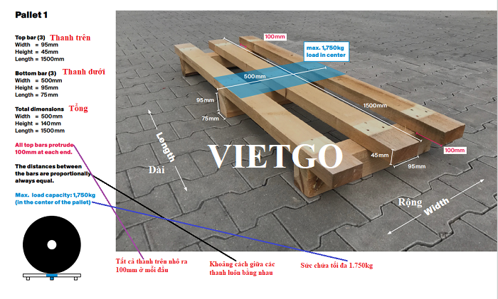 Hình ảnh kích thước pallet 1500 x 1000mm