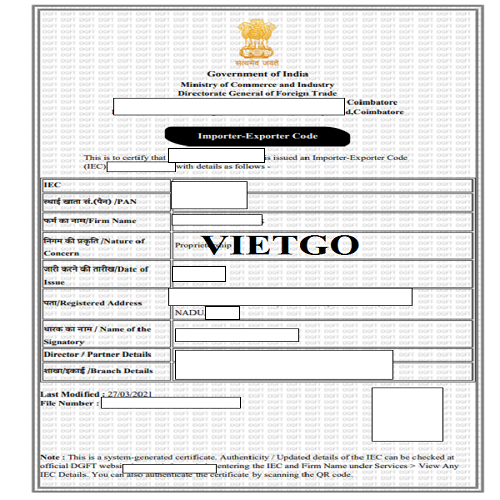 Hình ảnh giấy phép xuất nhập khẩu của công ty vị khách hàng