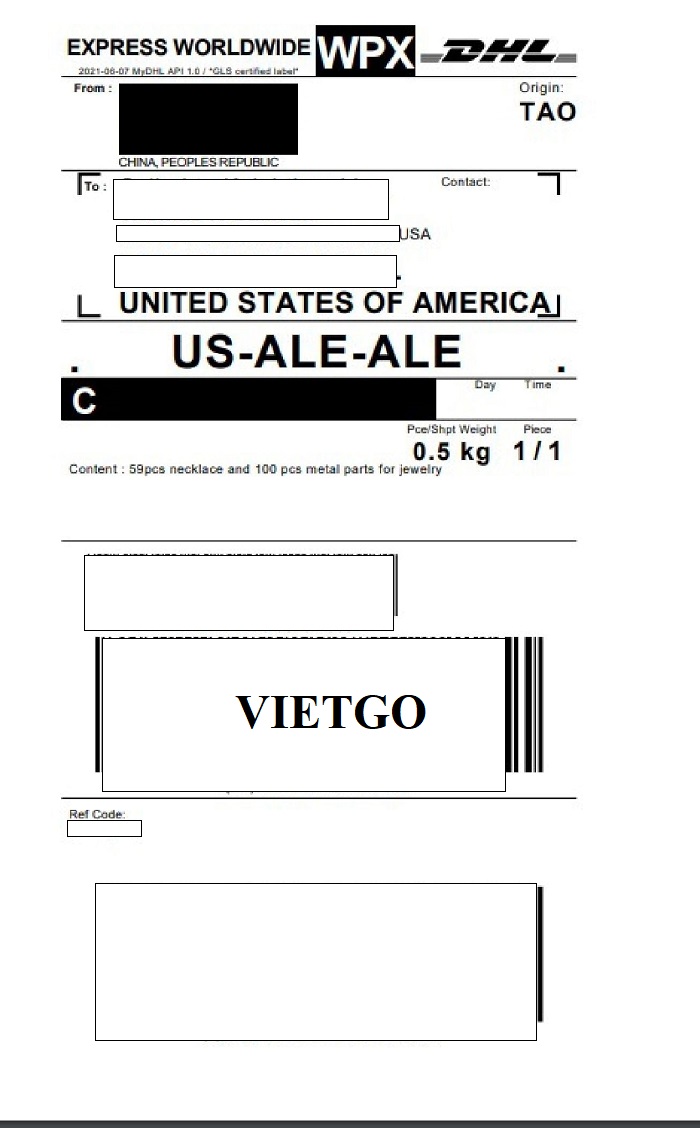 Dưới đây là hình ảnh bản vận đơn đường hàng không cho lần nhập khẩu vòng cổ và một số bộ phận lắp ráp trang sức do công ty ông Thomas nhập khẩu từ Trung Quốc: