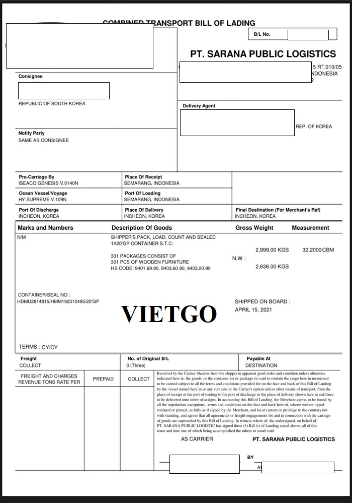 Hình ảnh bản vận đơn của công ty vị khách hàng