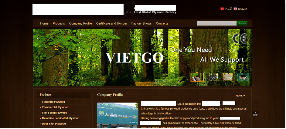 ██████████ ██████████., Ltd. tọa lạc tại quận ██████████, thành phố ██████████, Trung Quốc, là khu vực sản xuất ván ép lâu đời. ██████████ ██████████, Ltd. vô cùng nổi tiếng trong lĩnh vực kinh doanh sản xuất ván ép tại Trung Quốc. Công ty tập trung chủ yếu kinh doanh sản xuất và xuất khẩu ván ép cũng như nhập khẩu gỗ.