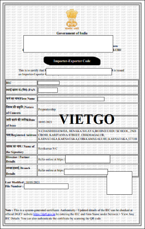 Hình ảnh giấy đăng ký mã xuất nhập khẩu từ vị khách hàng