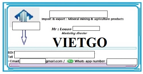 Qua quá trình làm việc và trao đổi về đơn hàng, VIETGO nhận thấy ông Louan là một vị khách hàng thân thiện và tiềm năng khi ông đã có nhiều kinh nghiệm trong lĩnh vực xuất nhập khẩu và bày tỏ thiện chí mong muốn hợp tác lâu dài với công ty hơn nữa trong những đơn hàng tiếp theo. Vậy, Quý nhà cung cấp nào có thể đáp ứng được yêu cầu của ông, vui lòng liên hệ và báo giá với ông qua địa chỉ thông tin liên lạc dưới đây: