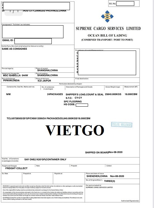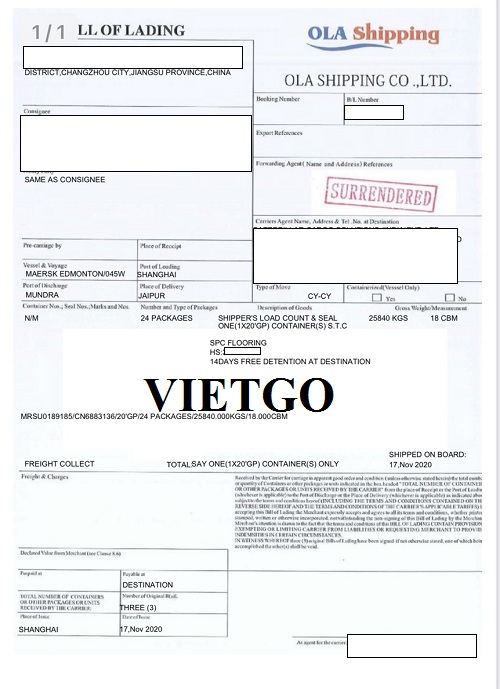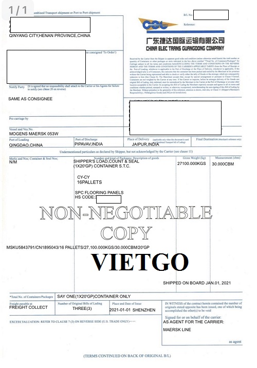 Dưới đây là 06 bản vận đơn nhập khẩu, sản phẩm ván sàn SPC từ Trung Quốc gần đây nhất của công ty vị khách hàng: