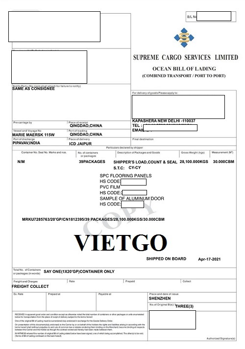Hình ảnh 06 bản vận đơn của công ty vị khách hàng