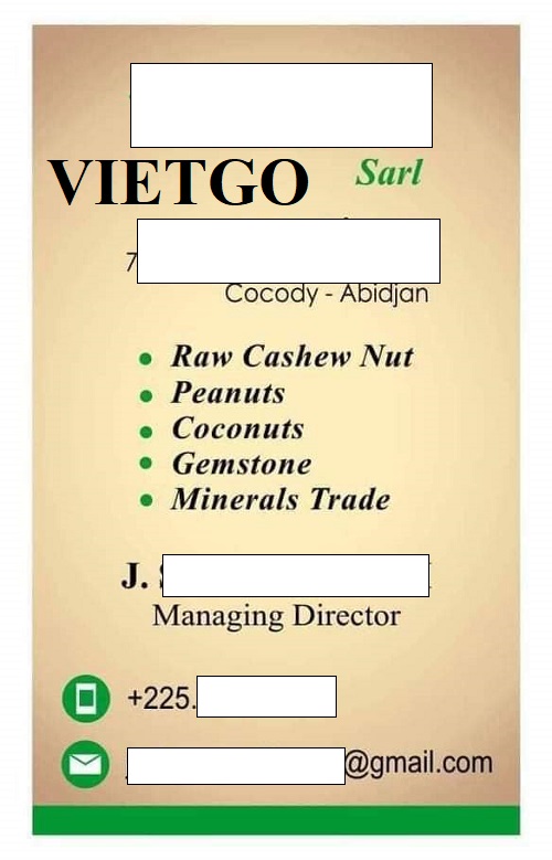 Hiện ông đang có nhu cầu tìm kiếm nhà cung cấp uy tín để có thể tiến hành đơn hàng nhập khẩu hàng tháng sang Côte d’Ivoire. Dưới đây là thông tin chi tiết về đơn hàng: