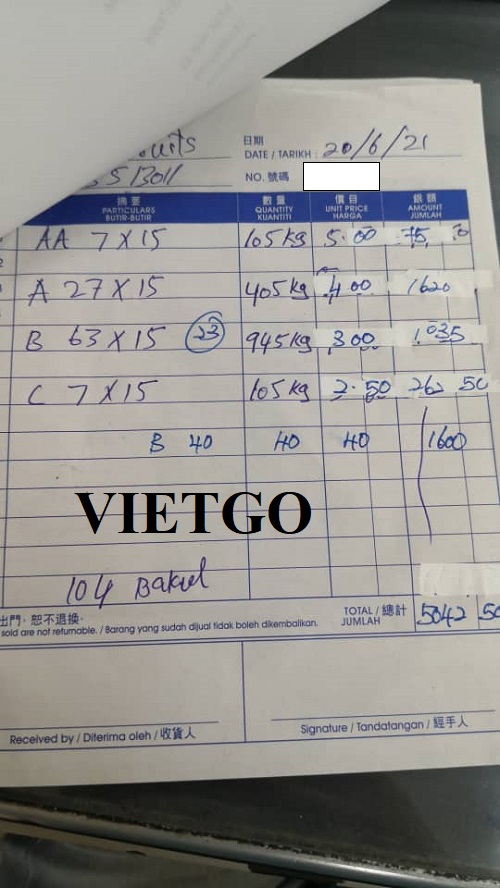 Hình ảnh hóa đơn bán lẻ mà vị khách hàng cung cấp