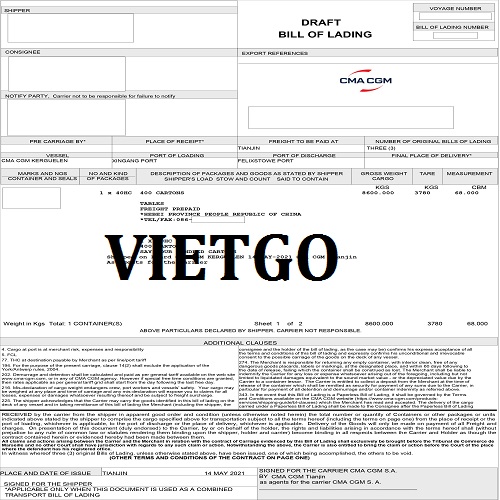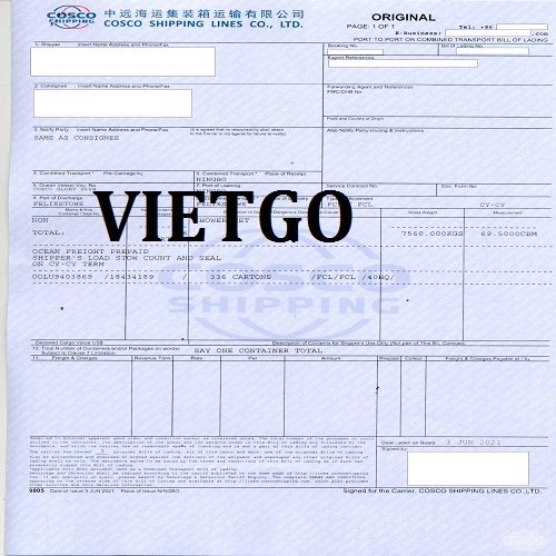Dưới đây là 05 bản vận đơn của chuyến hàng nhập khẩu đồ nội thất mới đây nhất từ thị trường Trung Quốc mà công ty vị khách hàng đã thực hiện thành công.