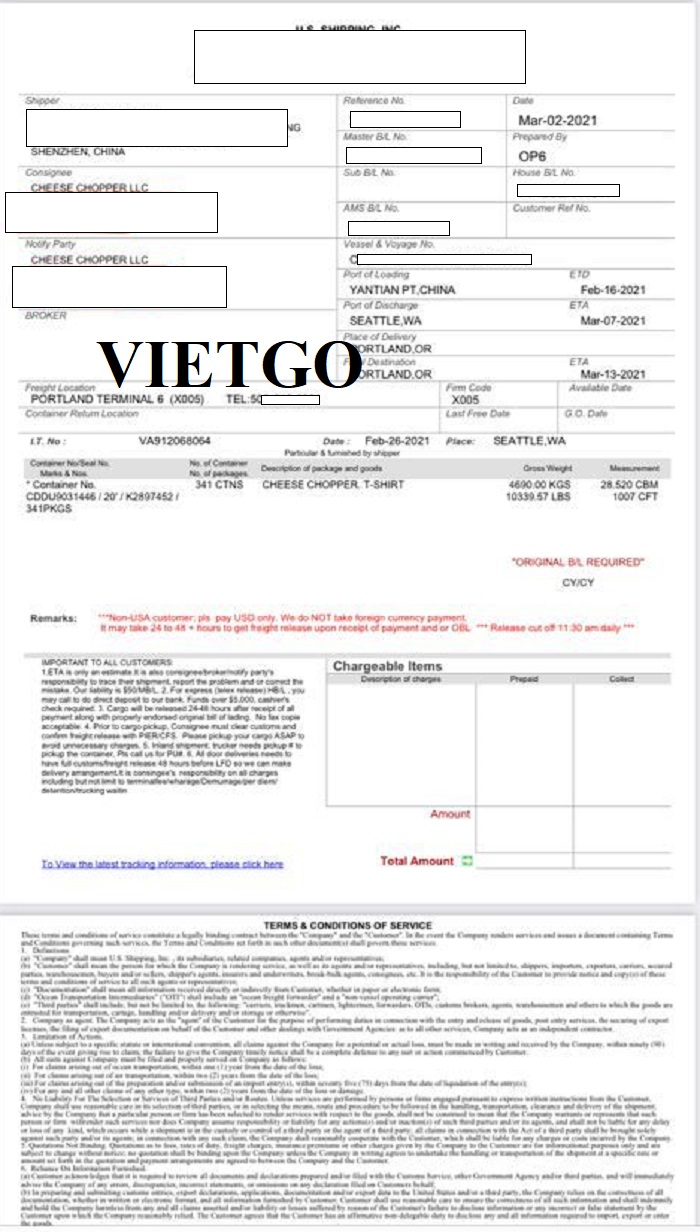 Ông Matt cho biết các sản phẩm của ██████████ LLC cũng được nhập khẩu từ thị trường Trung Quốc. Dưới đây là giấy thông báo hàng đến (Arrival Notice) của công ty vị khách hàng đối với lô hàng áo phông phục vụ công việc quảng cáo của công ty từ thị trường Trung Quốc vào ngày 13/01/2021