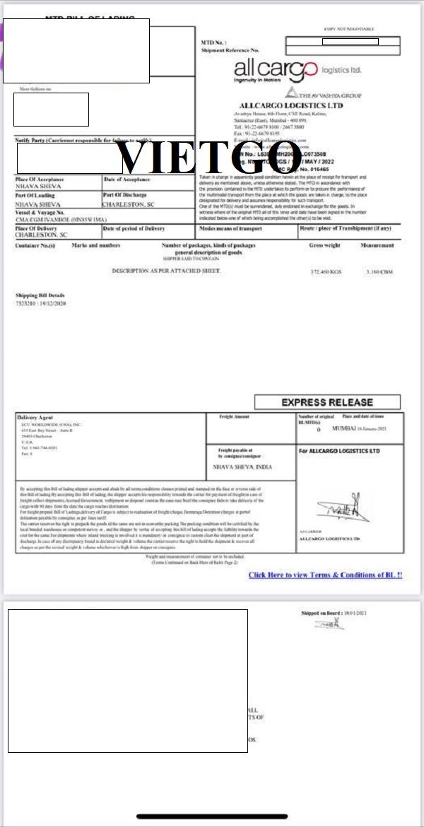 Vận đơn nhập khẩu quần áo nam từ Ấn Độ vào ngày 1/7/2021
