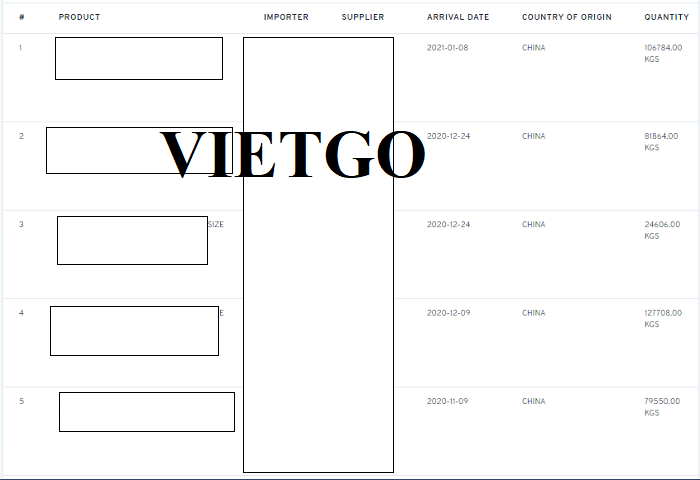 Hình ảnh thông tin nhập khẩu của công ty vị khách hàng trong thời gian gần đây