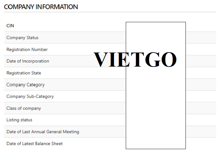 Hình ảnh thông tin công ty trên trang thông tin doanh nghiệp Ấn Độ