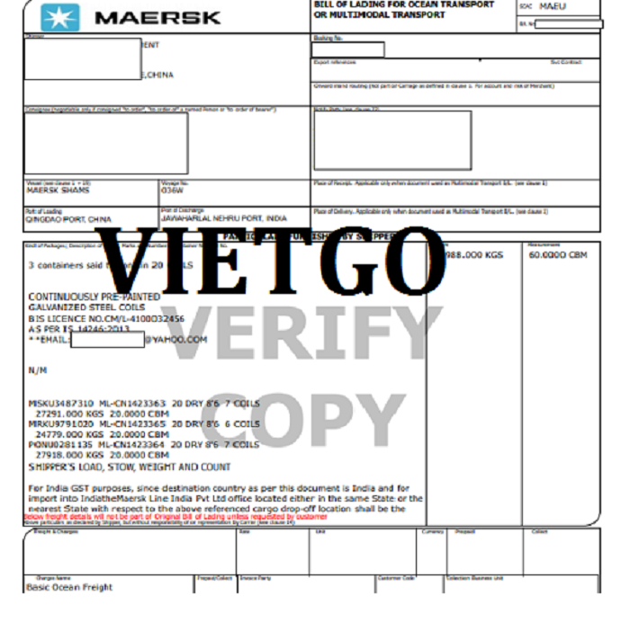 Dưới đây là hình ảnh bản vận đơn chuyến hàng nhập khẩu cuộn thép mạ màu từ Trung Quốc mà công ty vị khách hàng đã thực hiện thành công.