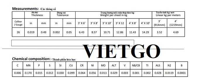 VIETGO xin gửi tới Quý nhà cung cấp thông tin đơn hàng nhập khẩu thép của anh David đến từ Mexico. Đây là vị khách hàng hiện cần nhập khẩu cuộn thép tấm cho dự án mới của công ty mình.