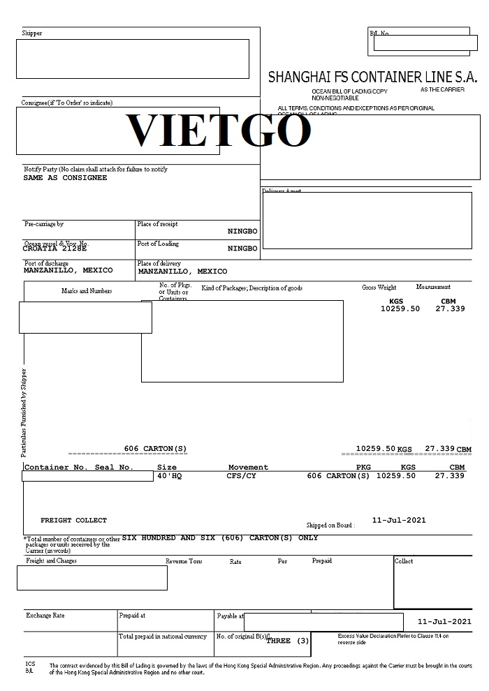 Dưới đây là vận đơn nhập khẩu một số dụng cụ học tập từ Trung Quốc của công ty anh David thực hiện thành công trước đó: