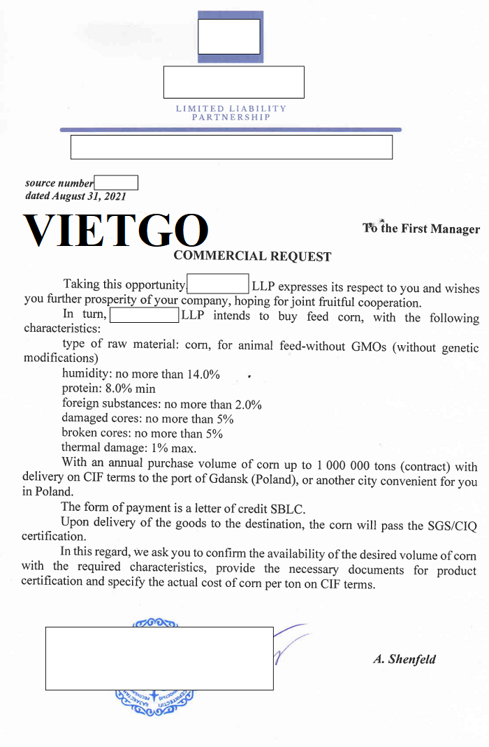 Vừa qua, ông Yerbol, vị khách tiềm năng đến từ một công ty thương mại, đã gửi tới VIETGO đơn hàng nhập khẩu ngô vàng sang thị trường Ba Lan của công ty ông.
