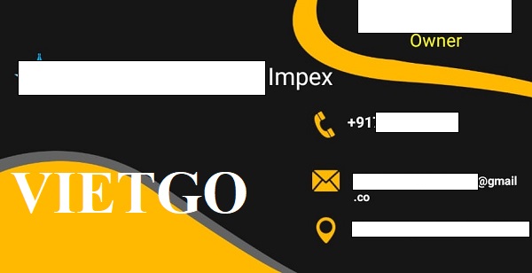 Ông Piyush ██████████là vị khách hàng đến từ Ấn Độ, ông hiện đang làm việc cho công ty ██████████Global Impex, chuyên cung cấp các sản phẩm thép, chất hóa học, phế liệu hàng đầu tại Ấn Độ. Liên hệ trực tiếp với VIETGO, ông Piyush có gửi tới đơn hàng nhập khẩu mặt hàng hạt nhựa PVC với số lượng 1 container 20ft mỗi tháng. Vị khách hàng cũng bày tỏ rằng, mong VIETGO sẽ giúp ông kết nối với những nhà cung cấp tiềm năng cho sản phẩm hạt nhựa PVC tại châu Á, đặc biệt là Việt Nam.