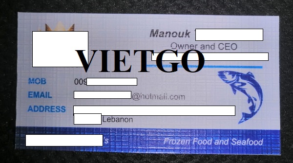 Qua tìm hiểu về vị khách hàng, VIETGO được biết công ty của ông là nhà nhập khẩu và phân phối lớn về các loại hải sản như cá, tôm, mực, bạch tuộc, v.v. Ông Manouk đã hoạt động trong lĩnh vực này từ năm 1979 và đến nay đã nhập khẩu được những sản phẩm chất lượng cao với giá thành cạnh tranh từ nhiều quốc gia trên thế giới trong đó có Việt Nam. Dưới đây là một số giấy tờ cho chuyến hàng nhập khẩu 26 tấn hải sản từ cảng Hồ Chí Minh, Việt Nam đến cảng Beirut, Li-băng của công ty vị khách hàng:
