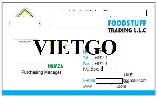 Hiện ông đang có nhu cầu tìm kiếm nhà cung cấp uy tín để có thể tiến hành đơn hàng nhập khẩu thường xuyên sang UAE và có thiện chí muốn hợp tác lâu dài với công ty trong những đơn hàng nhập khẩu tiếp theo. Dưới đây là thông tin chi tiết về đơn hàng: