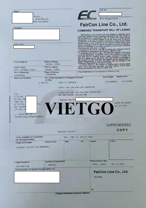 Ngoài ra, ông còn có rất nhiều mối quan hệ với các nhà cung cấp, doanh nghiệp lớn tại Singapore, Indonesia, và Việt Nam. Dưới đây là những bản vận đơn xuất khẩu hàng hóa của công ty ông cho doanh nghiệp tại Singapore mới nhất.