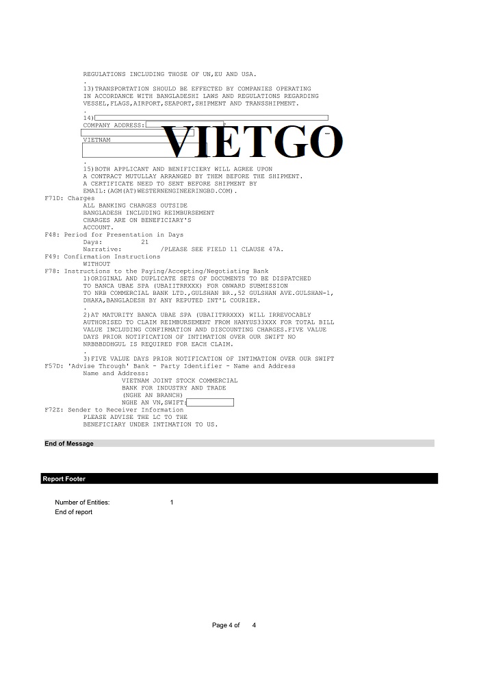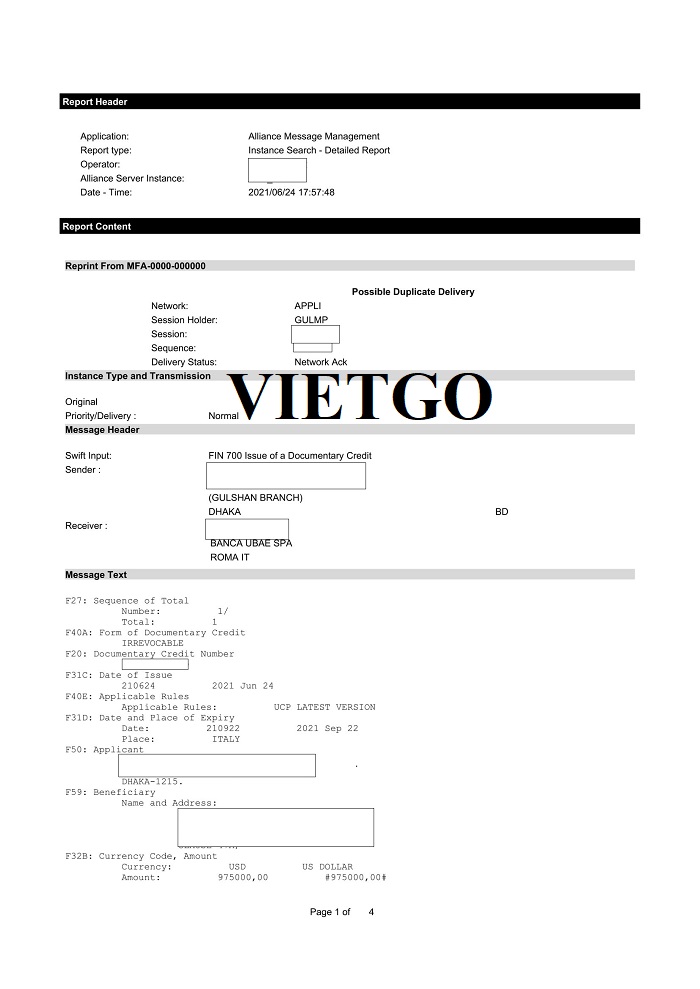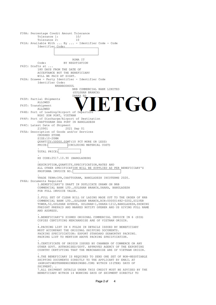 Dưới đây là một bản L/C của công ty ông Rahman đã từng mở trước đó cho đơn hàng nhập khẩu đá xây dựng từ Việt Nam: