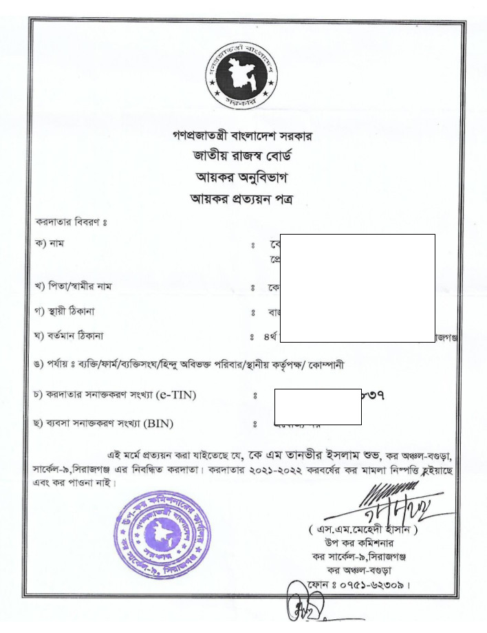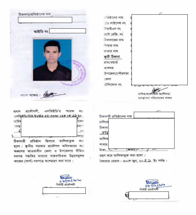 Một số giấy tờ cá nhân của anh Tanvir và công ty ██████████