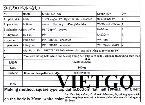 VIETGO vừa có cuộc trò chuyện với ông Sugai về đơn hàng nhập khẩu bao Jumbo. Chia sẻ chi tiết về đơn hàng này, ông Sugai cho biết “Hiện tại tôi đang hợp tác và nhập khẩu bao Jumbo từ một nhà cung cấp tại Hải Phòng, Việt Nam. Trong năm nay, chúng tôi đã nhập khẩu thành công 25.000 chiếc Jumbo. Tuy nhiên chúng tôi vẫn đang tìm kiếm thêm các nhà cung cấp khác để mở rộng đa dạng nguồn cung ứng hàng hóa cùng với mức giá cạnh tranh hơn để tối ưu hóa lợi nhuận. Trong năm tiếp theo công ty tôi vẫn dự kiến nhập số lượng bao Jumbo là 25.000 chiếc. Tuy nhiên trong lần nhập khẩu đầu tiên đối với nhà cung cấp mới chúng tôi sẽ nhập 6000 chiếc để kiểm tra chất lượng sản phẩm và làm quen với quy trình làm việc của họ trước. Tôi rất mong VIETGO có thể giúp chúng tôi tìm kiếm nhà cung cấp phù hợp để công ty tiến hành nhập khẩu trong thời gian sớm nhất”.