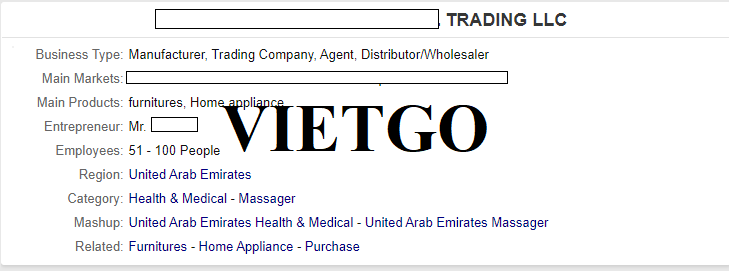 ██████████ hiện sử dụng hơn 50 chuyên gia đa quốc gia để xử lý các hoạt động giao dịch phức tạp hàng ngày và tư vấn xuất nhập khẩu cho các đối tác lâu năm của công ty. Thị trường hoạt động chính của ██████████ cũng vô cùng đa dạng, bao gồm các quốc gia thuộc khu vực Trung Đông, Bắc Mỹ, Nam Mỹ, Đông Âu và cả châu Á. Công ty đã bắt đầu đa dạng hóa các hoạt động kinh doanh bao gồm dịch vụ vận tải và vận chuyển hàng hóa để đáp ứng nhu cầu ngày càng tăng của khách hàng, đồng thời mở một vài chi nhánh văn phòng riêng tại nước ngoài để thực hiện các thỏa thuận với các đối tác mà công ty hiện không có đại diện tại đó. Sử dụng đội ngũ chuyên gia và nhân viên dày dặn kinh nghiệm, khách hàng có thể tin tưởng vào dịch vụ của ██████████ trong việc tìm nguồn cung ứng sản phẩm, sản xuất các mặt hàng và thương hiệu, mua hàng với giá cạnh tranh và xử lý các lô hàng với mức chi phí tiết kiệm và an toàn nhất.