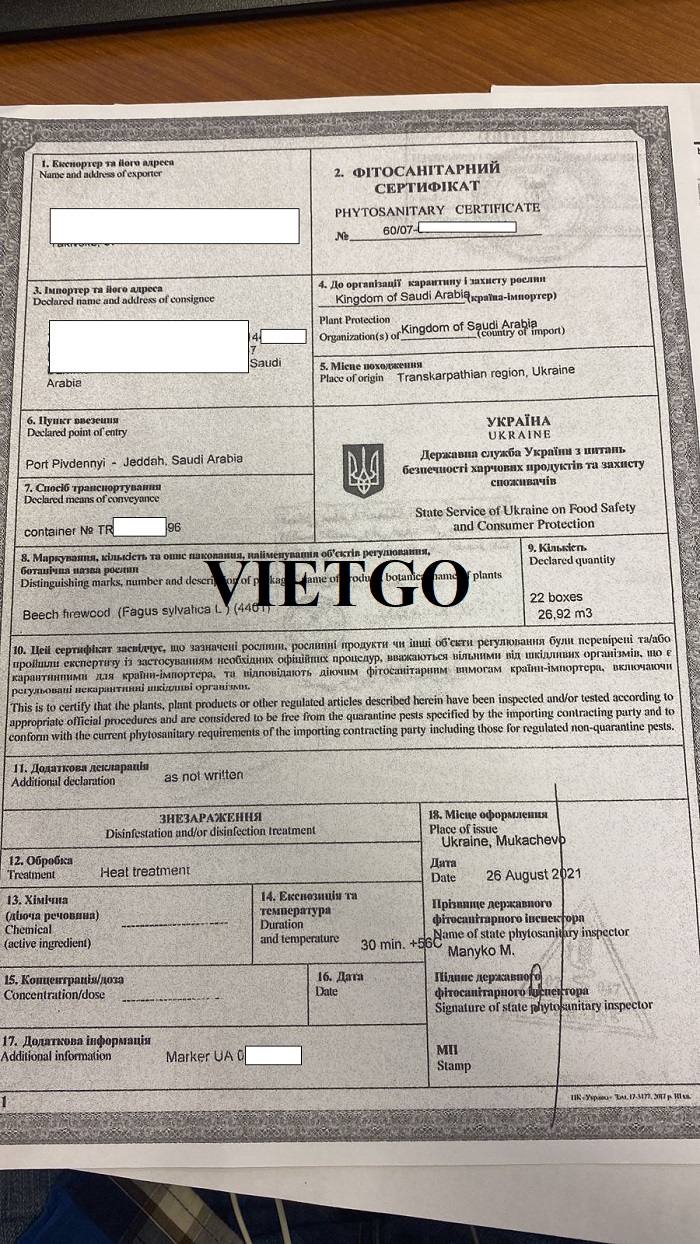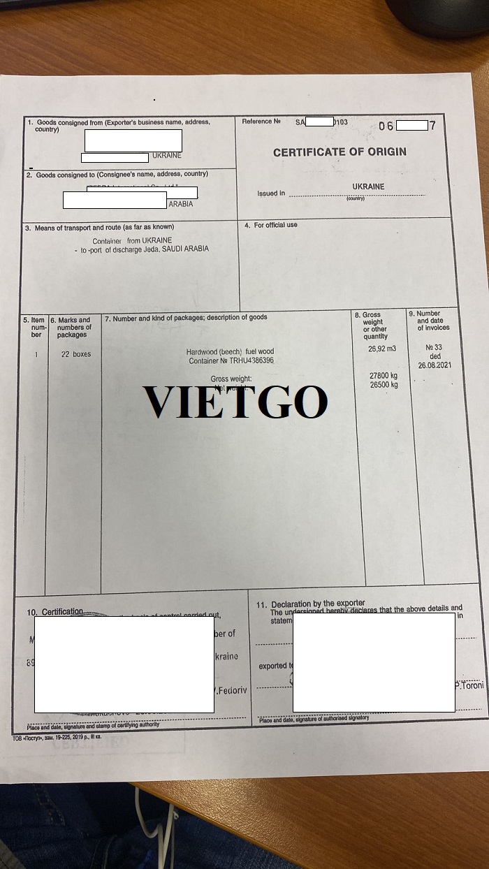 Dưới đây là giấy chứng nhận nguồn gốc xuất xứ của lô hàng nhập khẩu sản phẩm than từ thị trường Ukraine của công ty vị khách hàng vào ngày 28/8/2021.