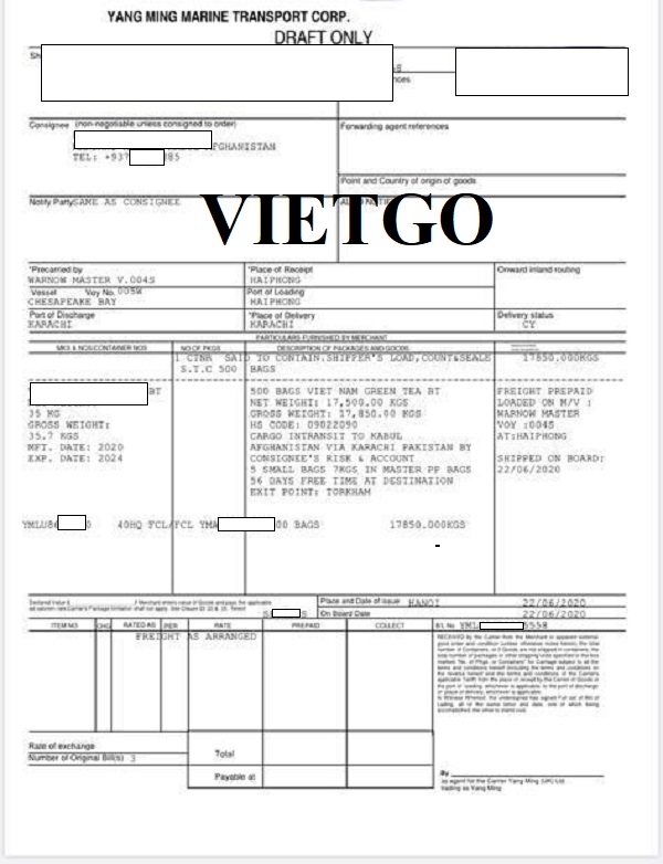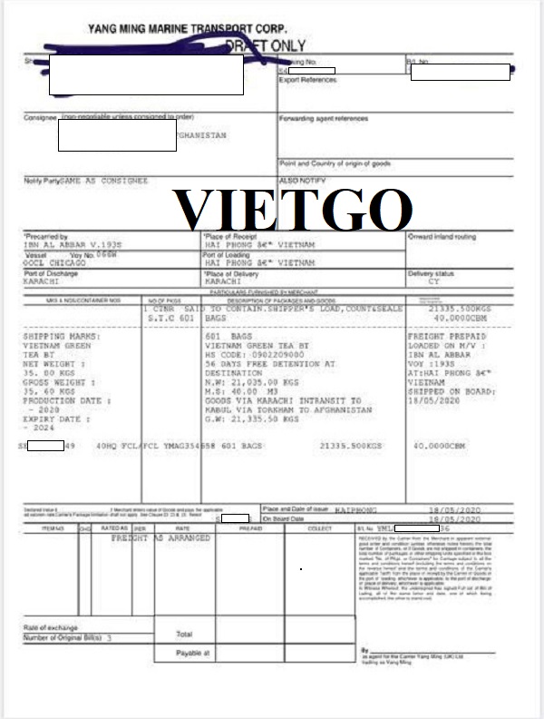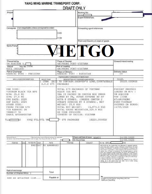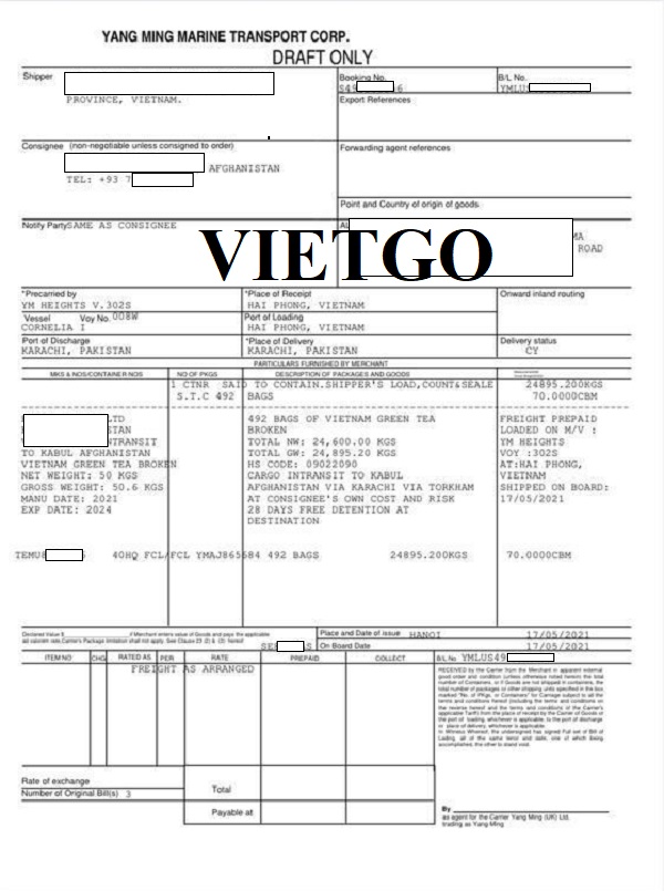 Dưới đây là vận đơn nhập khẩu vào ngày 17/05/2021 và các bản vận đơn từ tháng 5, 6/2020 nhập khẩu sản phẩm chè từ Việt Nam của công ty vị khách hàng: