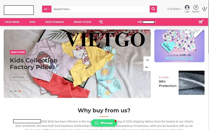 Bên cạnh việc kinh doanh cá nhân các sản phẩm trên, chị Nhung cho biết chị đang làm việc tại công ty ██████████ Trading SDN BHD – một công ty tư nhân có trụ sở đặt tại thành phố Kuala Lumpur và thành phố Hồ Chí Minh. Công ty chị hoạt động chính trong việc cung cấp các sản phẩm khẩu trang y tế, khẩu trang vải, quần áo trẻ em và một số sản phẩm may mặc khác. Hầu hết các sản phẩm của ██████████ Trading SDN BHD đều được sản xuất tại Việt Nam và được phân phối tại thị trường Malaysia chủ yếu thông qua kênh bán hàng trực tuyến của công ty. Bên cạnh đó, công ty chị cũng có cửa hàng đặt tại Kuala Lumpur để phục vụ khách hàng trong khu vực có nhu cầu mua và thử hàng trực tiếp. Chị Nhung cho biết, doanh thu chính của công ty chị đến từ những đơn hàng đơn hàng bán buôn số lượng lớn cho những đối tác của mình. Có thể nói giá trị cốt lõi của ██████████ Trading SDN BHD là tạo dựng niềm tin với khách hàng bởi sự tin tưởng đối với loại hình kinh doanh của mình, sự hỗ trợ tốt nhất cho khách hàng và đối tác sẽ là chìa khóa để thành công và tiếp tục phát triển.