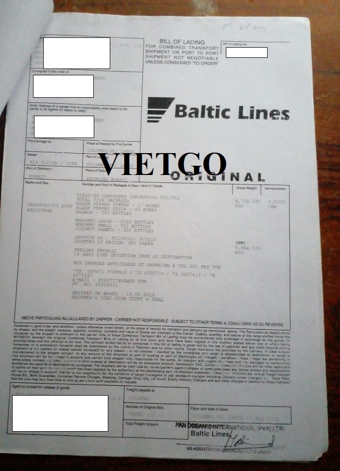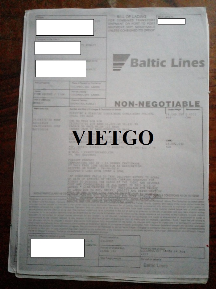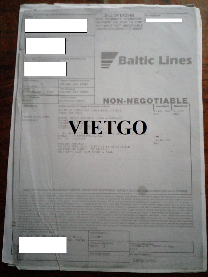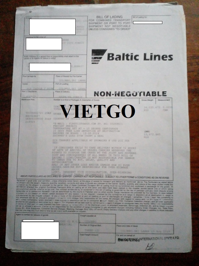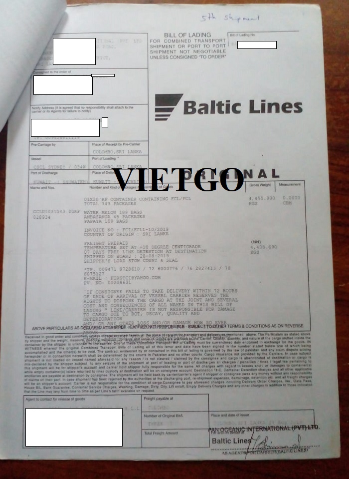 Hình ảnh một số vận đơn nhập khẩu sản phẩm trái cây từ Kuwait sang Sri Lanka vào năm 2019