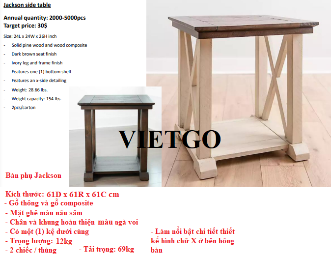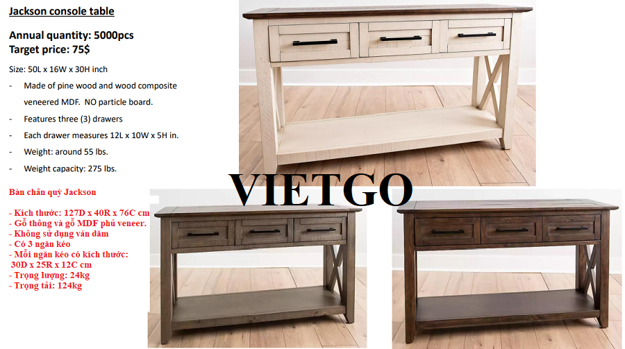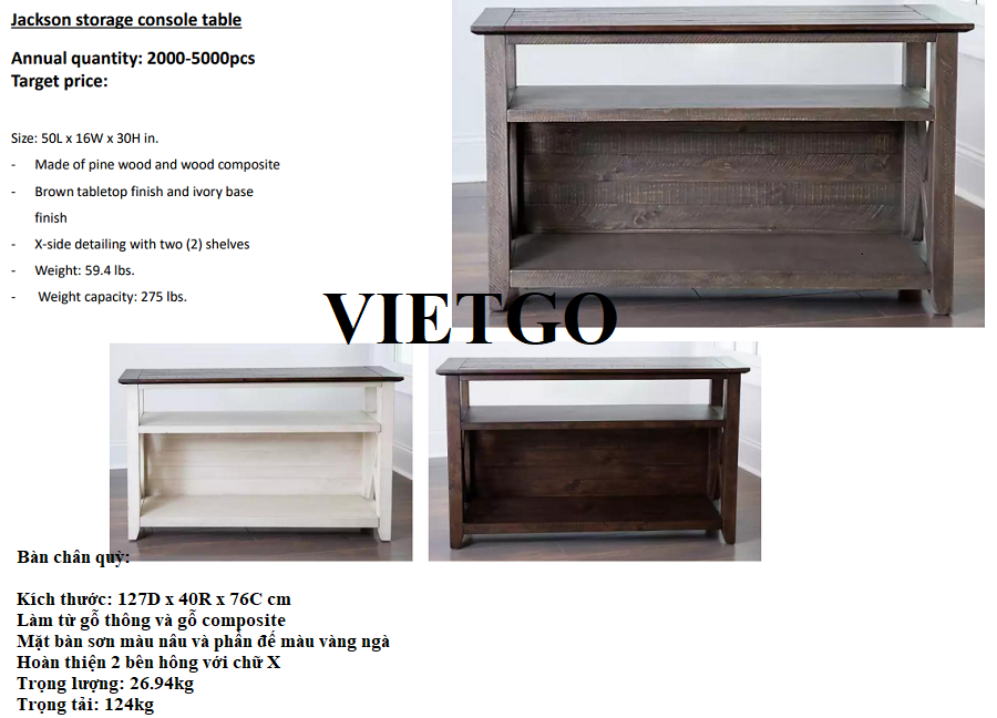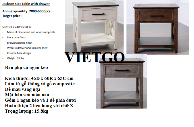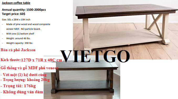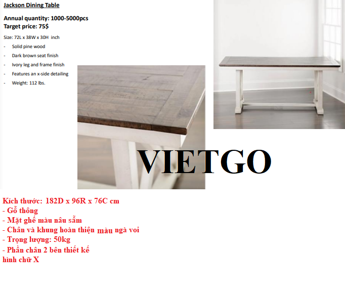 VIETGO xin gửi tới Quý nhà cung cấp thông tin về đơn hàng bàn gỗ Jackson đến từ vị khách hàng tiềm năng, chị Nhi.