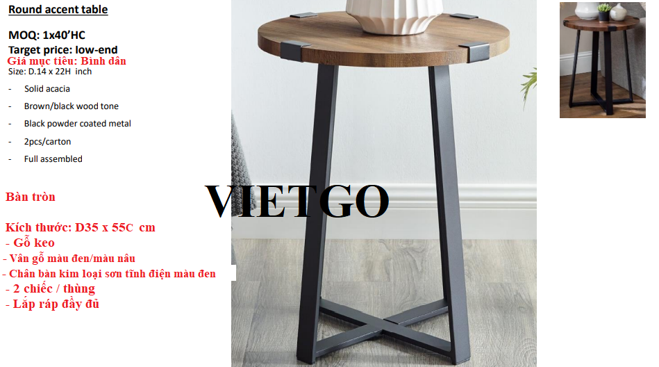 Mặt hàng bàn gỗ là một loại sản phẩm rất ưa chuộng tại thị trường châu Á và được rất nhiều doanh nghiệp lớn tin tưởng và nhập khẩu. Chính vì thế, chị Nhi đã tận dụng điều này và liên hệ với VIETGO trao đổi những yêu cầu và mong muốn của mình.