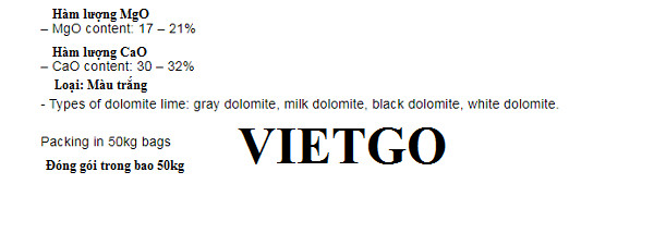 Trò chuyện cùng với VIETGO, ông cho biết: “Tôi đang làm việc cho các công ty ở nước ngoài và có những mối quan hệ kinh doanh chặt chẽ trên toàn cầu. Với đơn hàng nhập khẩu lần này, tôi đang cần cung cấp vôi dolomite cho 4 công ty hàng đầu về nuôi trồng thủy sản tại Bangladesh. Tôi hy vọng sẽ sớm nhận được thông tin liên hệ từ các nhà cung cấp để trao đổi thêm về đơn hàng.