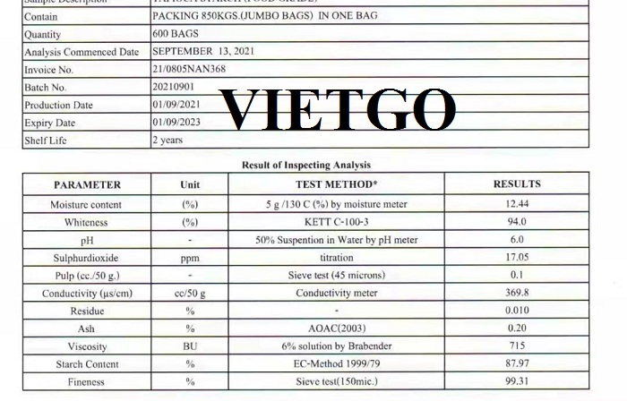 Thông tin chi tiết về sản phẩm tinh bột sắn xin được gửi đến Quý doanh nghiệp như sau: