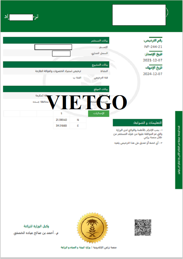 Hình ảnh Giấy phép nhập khẩu của công ty vị khách hàng