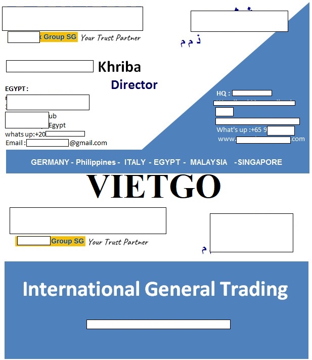Hiện tại, ông Khriba đang sử dụng đầu số tại Singapore để giao dịch và đàm phán. Qúy nhà cung cấp vui lòng liên hệ cho vị khách hàng qua thông tin liên hệ sau: