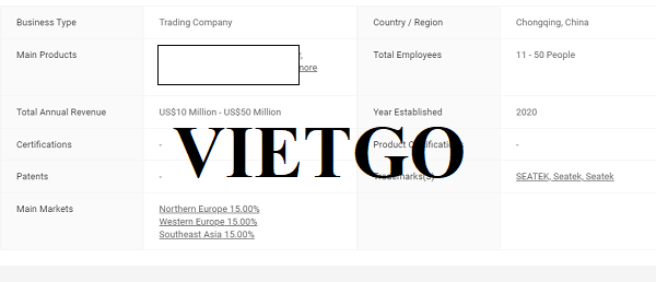 Công ty của ông James có tên là ██████████ ██████████ Trading Co., Ltd, một công ty kinh doanh chuyên nghiệp được tài trợ bởi các nhà cung cấp địa phương tại thành phố Trùng Khánh. Ngành nghề kinh doanh chính của công ty là kinh doanh các sản phẩm sức khỏe và y tế, phụ kiện công nghê và điện thoại thông minh. Vị khách hàng chia sẻ: “Chúng tôi là một công ty thương mại lâu đời tại Trung Quốc và đang phát triển mạnh mẽ. Chúng tôi cung cấp hàng hóa hoặc thiết bị từ nhà máy trực tiếp với giá cả cạnh tranh nhất, dịch vụ chuyên nghiệp và đem tới cảm giác hài lòng cho tất cả khách hàng của chúng tôi ở Trung Quốc và nước ngoài. Chúng tôi có đầy đủ các đối tác hợp tác để sản xuất máy trợ thính, máy phun sương, máy đo y tế, thiết bị chống ngáy, mặt nạ mắt hơi nước, v.v. Chúng tôi chăm sóc khách hàng bằng cả sản phẩm và dịch vụ của chúng tôi với giá cạnh tranh nhất”.