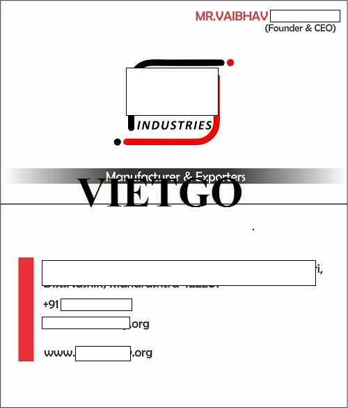 Được biết, VIETGO có lợi thế về xúc tiến xuất khẩu tại thị trường Đông Nam Á nên vị khách hàng đã liên hệ với VIETGO cho đơn hàng lần này. Mọi thông tin Quý vị vui lòng liên hệ qua địa chỉ dưới đây cho anh Vaibhav để nhanh chóng báo giá và xuất khẩu thành công đơn hàng hấp dẫn này.