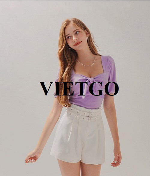 Chị Belle, nữ doanh nhân đến từ Malaysia đã gửi tới VIETGO nhu cầu nhập khẩu sản phẩm áo croptop, phục vụ cho công việc kinh doanh của mình ở thị trường nội địa. Với đơn hàng này chị hy vọng được làm việc với những nhà cung cấp phù hợp tại châu Á. Quý nhà cung cấp vui lòng tham khảo thông tin đơn hàng dưới đây: