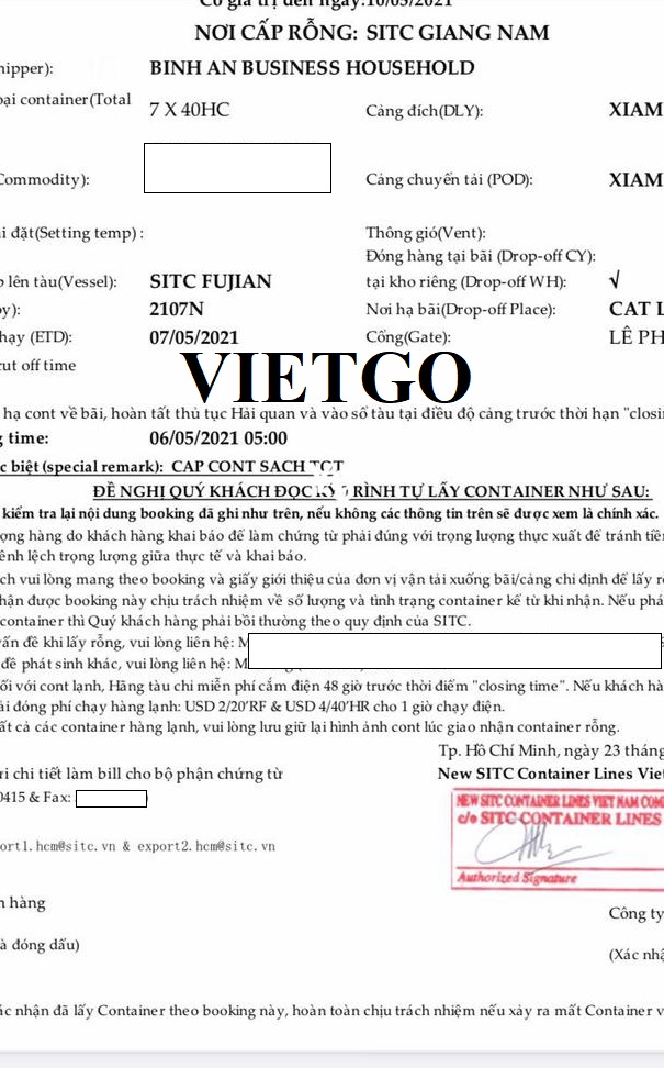 Giấy tờ đặt tàu vận chuyển sản phẩm than từ Việt Nam dự kiến cập bến Hạ Môn, Trung Quốc vào ngày 5/8/2021
