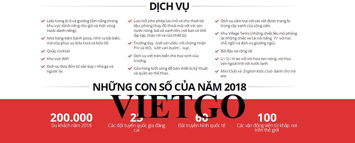Hình ảnh một số dịch vụ và con số thống kê lượng du khách tới thăm khu nghỉ dưỡng vào năm 2018