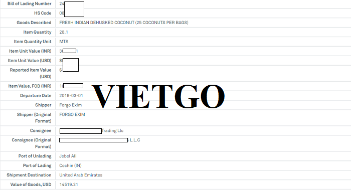 Hình ảnh vận đơn đường biển mà công ty vị khách hàng từng giao dịch trên một trang dữ liệu nước ngoài