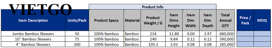 Cơ hội giao thương cung cấp xiên tre hàng tháng cho một doanh nghiệp tại Mỹ