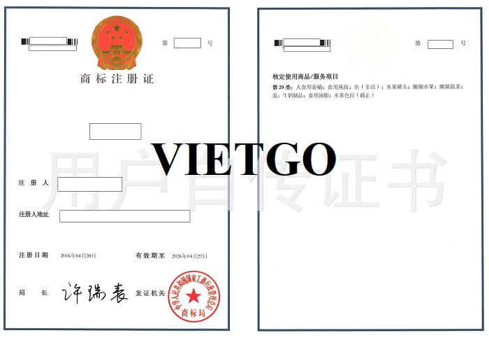 Hình ảnh Giấy chứng nhận đăng ký nhãn hiệu của công ty vị khách hàng