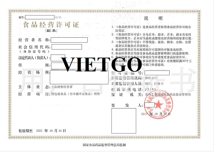 Hình ảnh Giấy phép đăng ký kinh doanh thực phẩm của công ty vị khách hàng