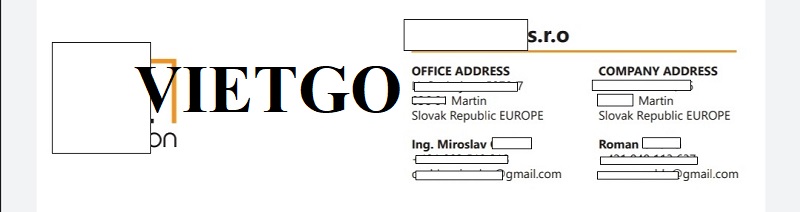 Địa chỉ công ty: ██████████ ██████████ ██████████, Cộng hòa Slovak