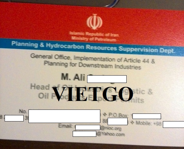 VIETGO xin gửi tới Quý nhà cung cấp thông tin về đơn hàng nhập khẩu sản phẩm dầu hạt cải đến từ vị khách hàng người Iran – ông Ali.
