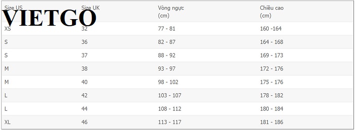 Bảng kích thước đã được gửi tới vị khách hàng tham khảo và thông qua